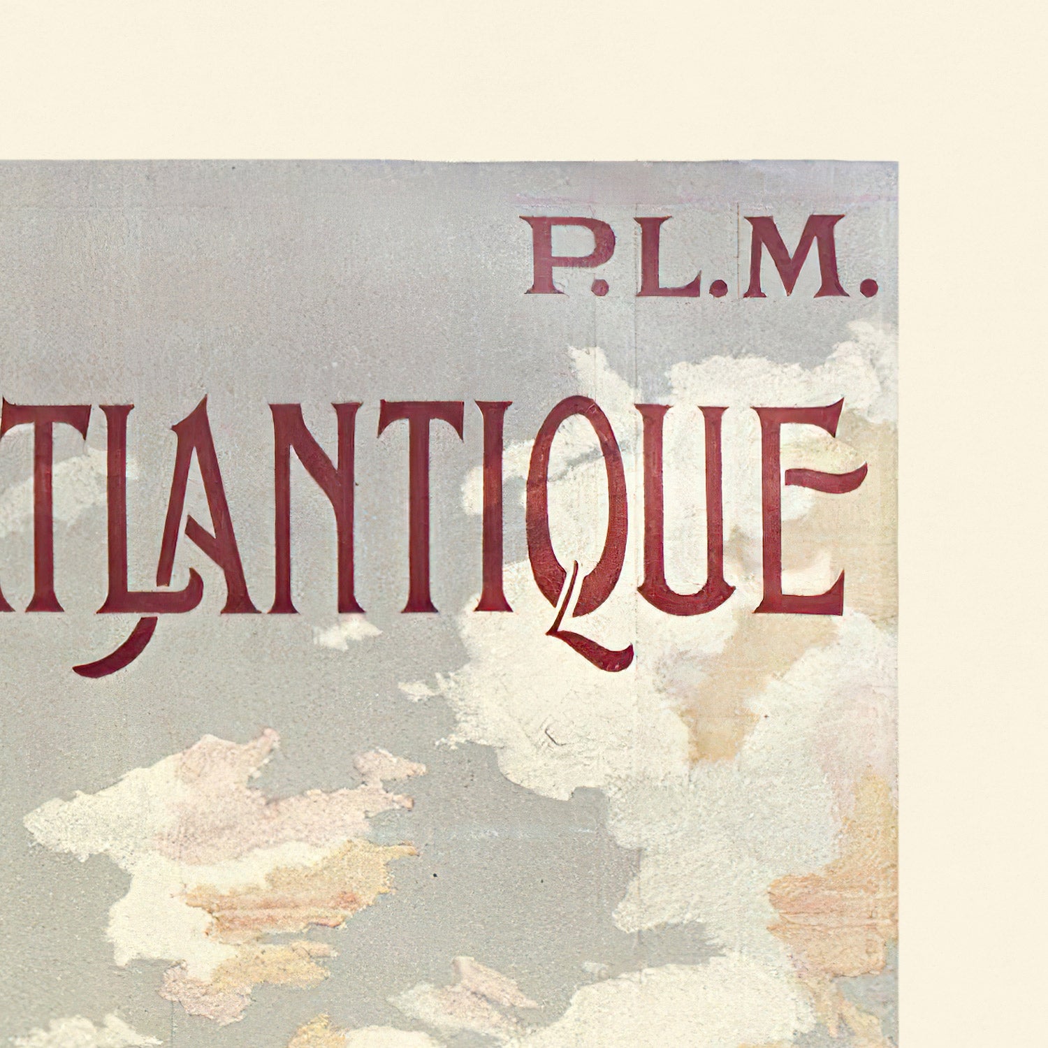 Cie. Gle Transatlantique, Alger by Fernand Le Quesne (1901) is a luminous Belle Époque travel poster inviting the viewer across the Mediterranean to Algiers. Created for the Compagnie Générale Transatlantique in collaboration with the P.L.M. railway, the design celebrates the speed and romance of turn‑of‑the‑century travel. In the image, a black‑hulled liner with a single red funnel glides into a deep blue harbor, gulls skimming the whitecaps in the foreground while Algiers rises behind in sun‑bleached tiers and graceful seaside arcades. The poster’s hand‑lettered notes “Algérie Tunisie” and “Marseille–Alger en 24 Heures” evoke the era’s streamlined connections between France and North Africa.
