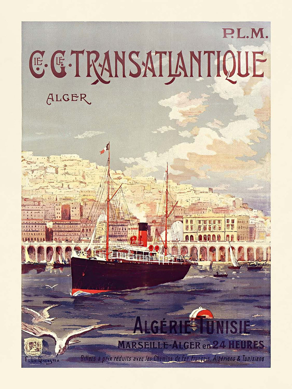 Algiers Travel Poster: Cie. Gle Transatlantique by Fernand Le Quesne, 1901