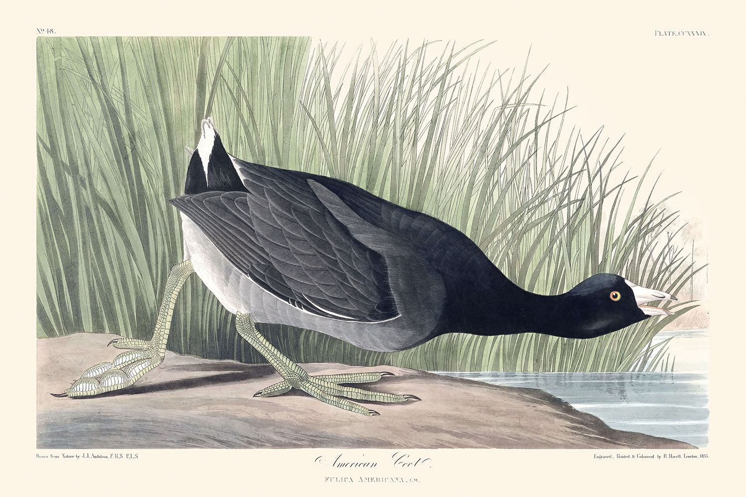 American Coot (Plate 239), first published in 1827, is one of the captivating illustrations from John James Audubon's magnum opus, The Birds of America. Audubon’s meticulous attention to detail and his profound appreciation for avian beauty are evident in this exquisite portrayal of the American Coot.