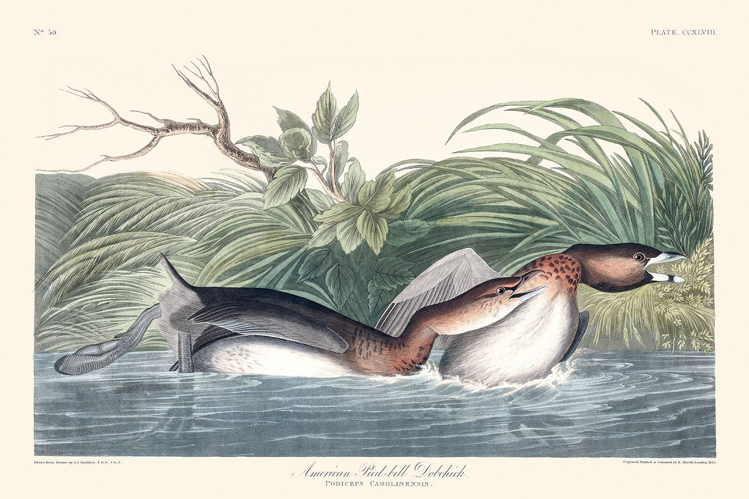 Now, for the first time in nearly two centuries, you can own a bespoke fine art print of "American Pied-billed." Handcrafted with care at The Unique Maps Co. workshop, our prints are created on rich archival matte paper that resists fading and wrinkling, ensuring a masterpiece that endures.