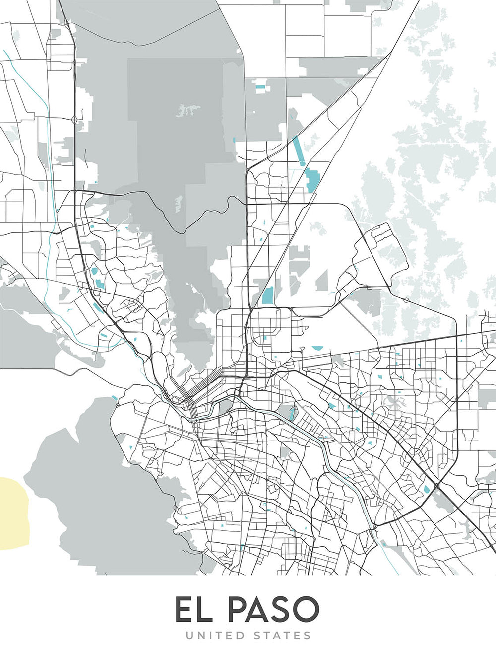 This map of El Paso is a beautiful and informative work of art that will add a touch of sophistication to any home or office. Whether you're a local resident or just a visitor, this map is sure to capture your imagination and leave you wanting to explore more of this vibrant city.