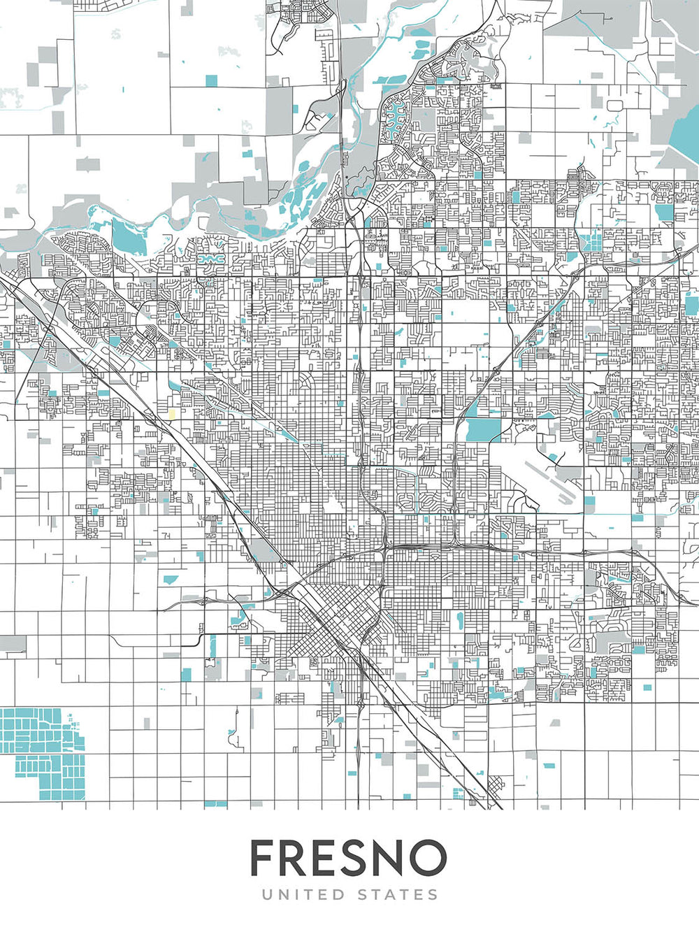 This map is a perfect addition to any home or office, and it makes a great gift for anyone who loves Fresno or is interested in cartography and design. The map's unique style and attention to detail make it a truly special piece of art that will be treasured for years to come.