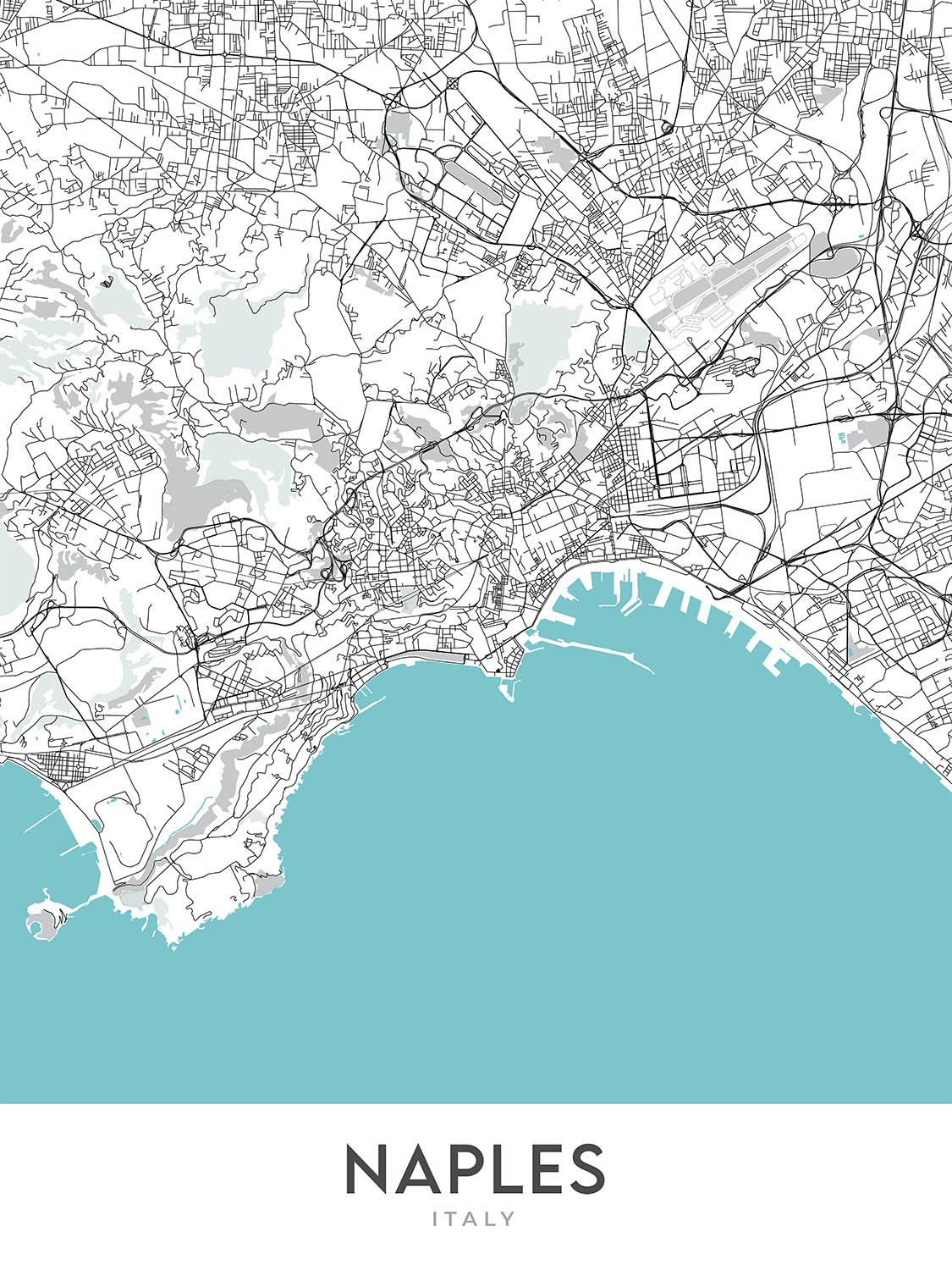 This original creation by The Unique Maps Co. features unique cartography, modern design, and a striking color palette. It is a beautiful piece of art that will complement any home or office décor. The map is printed on high-quality paper and is available in a variety of sizes to suit your needs. Whether you are a local resident, a tourist, or simply someone who loves maps, this map of Naples is sure to impress.