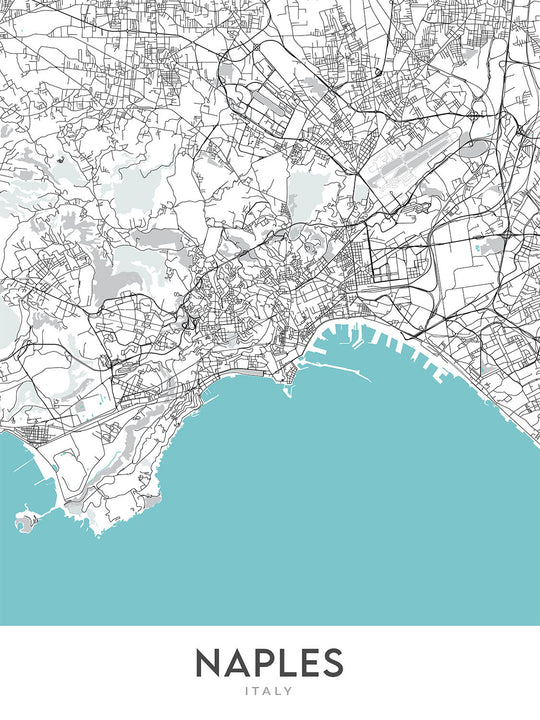 Modern City Map of Naples, Italy: Chiaia, Castel Nuovo, Galleria Umberto I, Posillipo, San Carlo Theatre