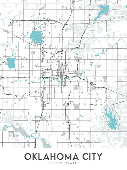 Modern City Map of Oklahoma City, OK: Downtown, Bricktown, Paseo, Midtown, Capitol