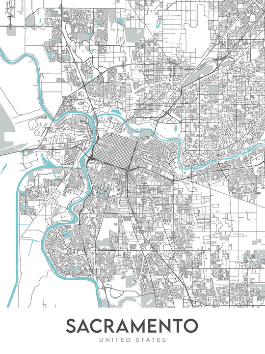 Modern City Map of Sacramento, CA: Downtown, Midtown, East Sac, Sac State, American River