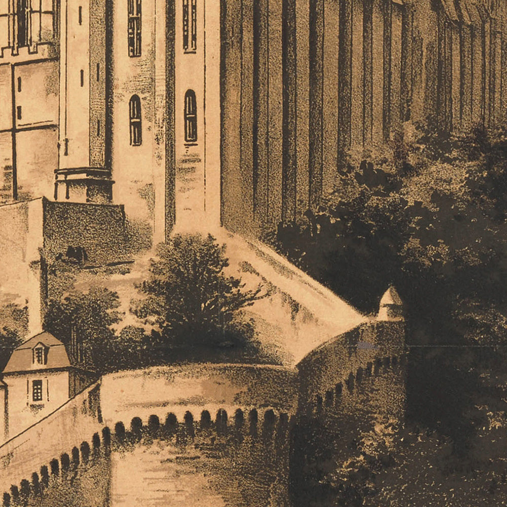 The subject of this poster needs little introduction: Mont-Saint-Michel, the UNESCO-listed island sanctuary whose medieval abbey has drawn pilgrims and wanderers for centuries. By the 1890s, improved rail links made day-trips from Paris and the northern cities newly possible. Posters like this one advertised the romance and ease of such excursions, encouraging visitors to time their visits with the tides and savor the spectacle of the bay, the causeway, and the cloistered heights of the abbey.