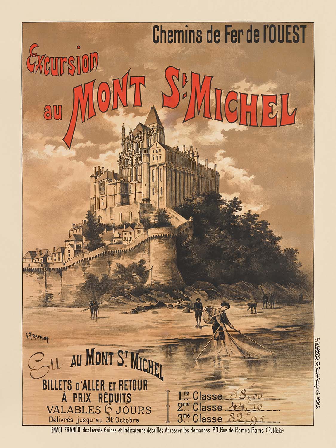 Mont-Saint-Michel Travel Poster: Excursion au Mont St-Michel by Gustave Fraipont, 1895