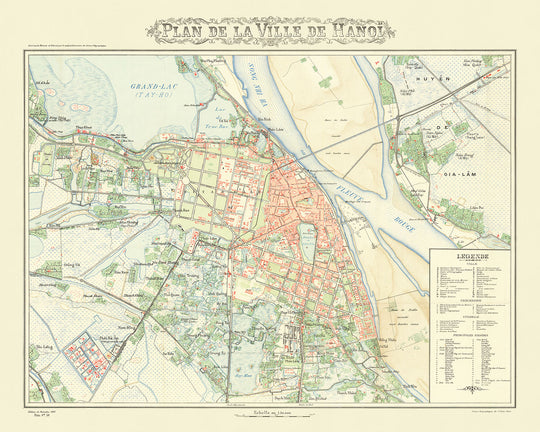 In conclusion, the "Plan de la Ville de Hanoi" is more than a mere map; it is a captivating chronicle of Hanoi's architectural and cultural metamorphosis under French colonial rule. For collectors, historians, and aficionados of cartography, this map is a luxury artifact that encapsulates a unique moment in the history of one of Asia's most vibrant cities. Its meticulous detail, historical context, and aesthetic beauty make it an unparalleled addition to any collection, inviting viewers to explore the rich tapestry of Hanoi's past.