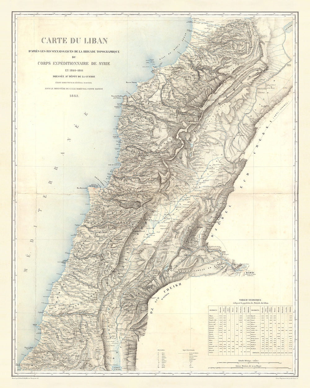 The map was made in the aftermath of the sectarian violence. It is likely that the French cartographers were interested in mapping Lebanon in order to better understand the geography and demographics of the region. The map may also have been used for military purposes.