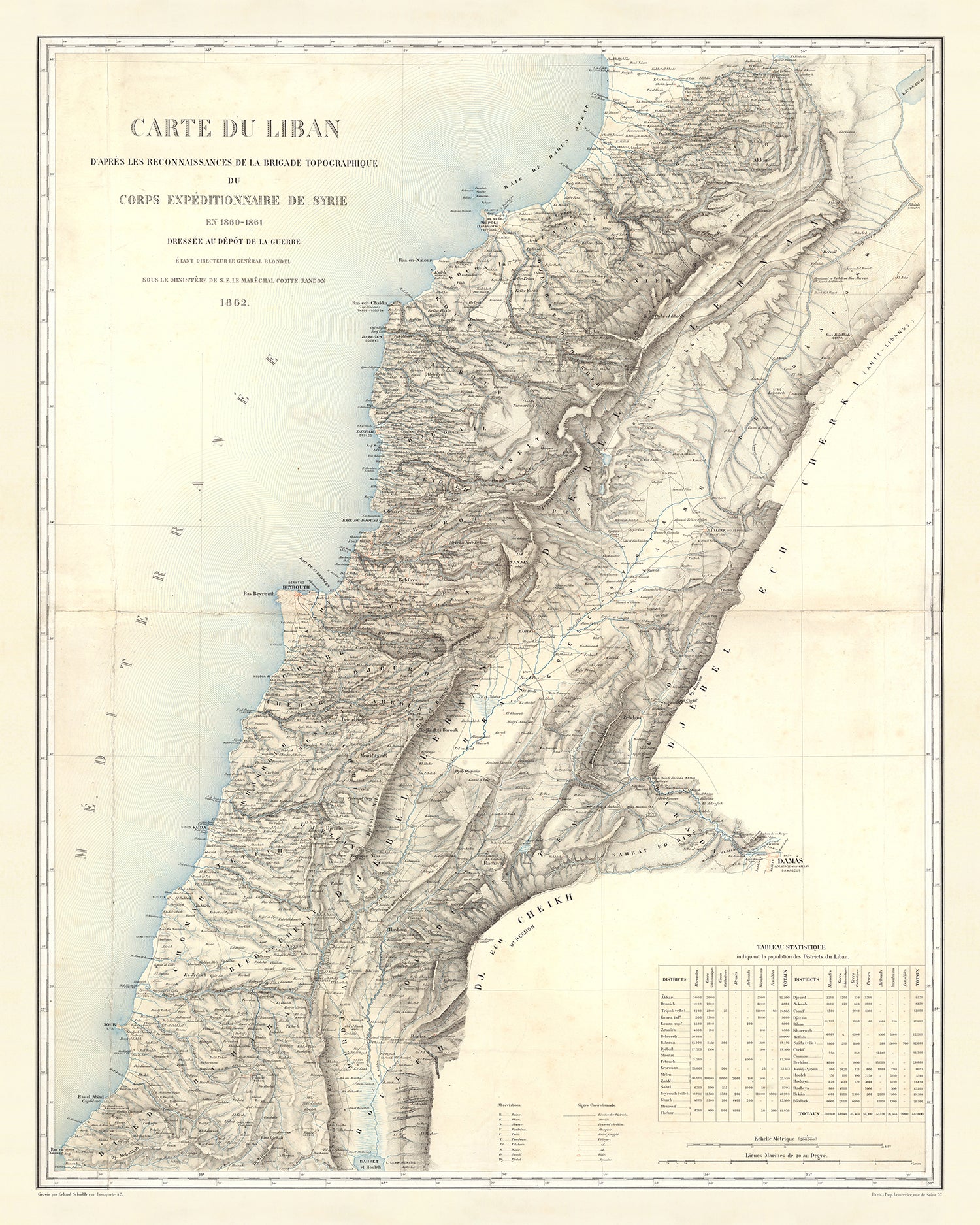 This map was made during a period of great upheaval in Lebanon. In 1860, a series of sectarian clashes broke out between the Maronite Christians and the Druze Muslims. The violence resulted in the deaths of thousands of people and the destruction of many villages. The French intervened to restore order, and they remained in Lebanon for several years.