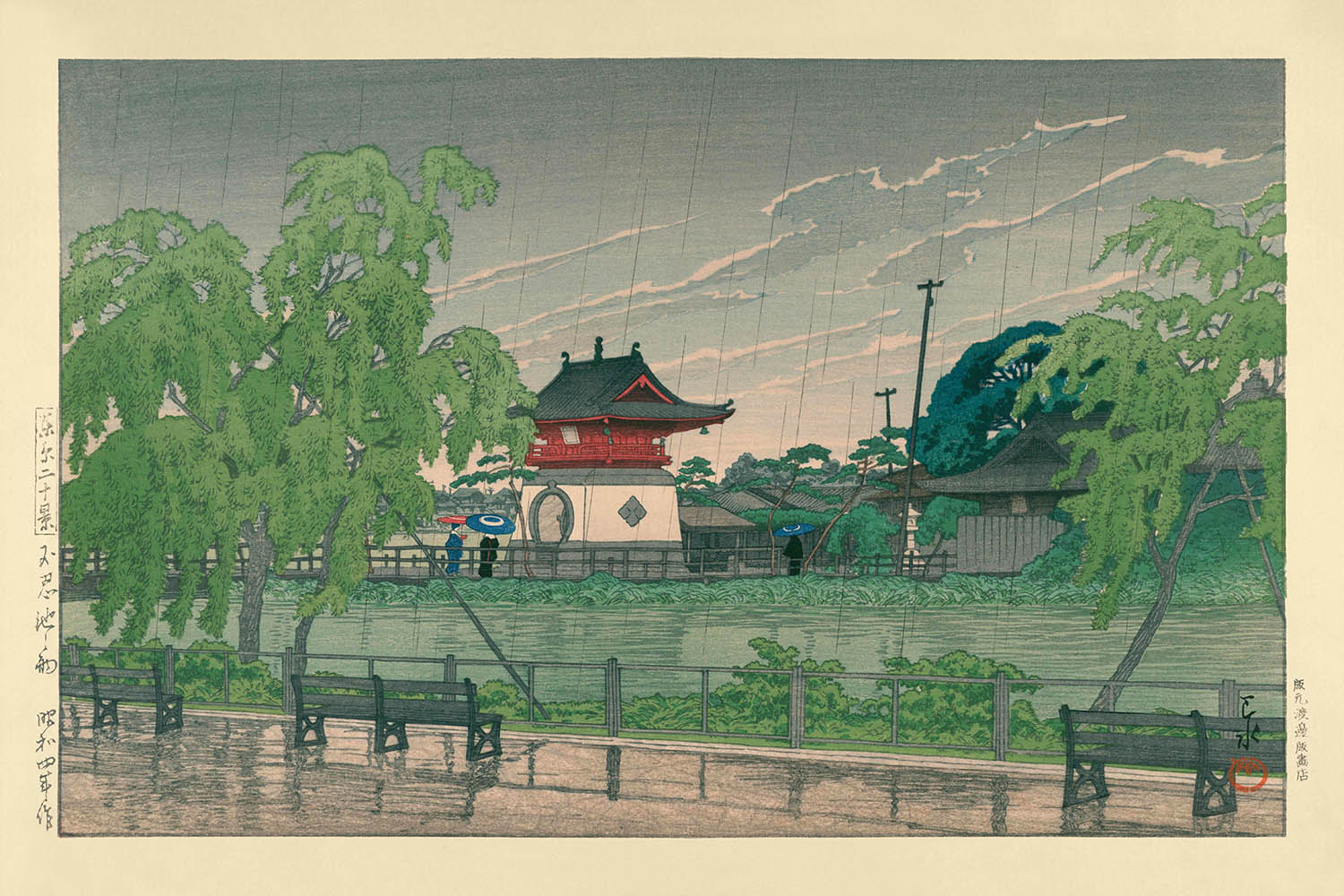 Rain at Shinobazu Pond by Hasui Kawase, 1935
