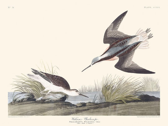 Wilson's Phalarope, first published in 1827, showcases the delicate artistry of John James Audubon, a name synonymous with ornithological beauty and precision. This masterpiece belongs to his renowned collection, "Birds of America," which is celebrated for its life-sized, vividly detailed portrayal of American bird species.