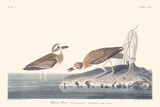 "Wilson's Plover" stands out among Audubon’s collection for its vivid detail and the stories it tells through both depiction and descriptive narrative. Audubon himself was fascinated by the bird, observing and documenting its behavior and habitat with extraordinary detail. With a scientific title, Charadrius Wilsonius, the Wilson's Plover's intricate features and habitats are captured vividly, offering both beauty and educational value.