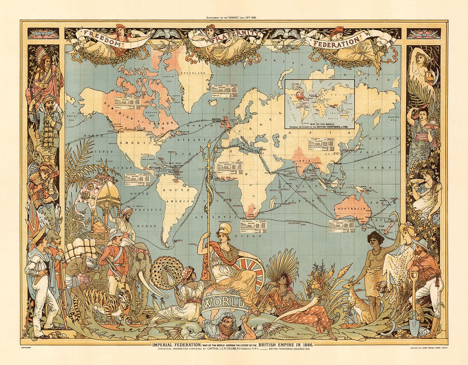 Old British Empire World Map, 1886: Queen Victoria Jubilee Wall Chart by the "Graphic"