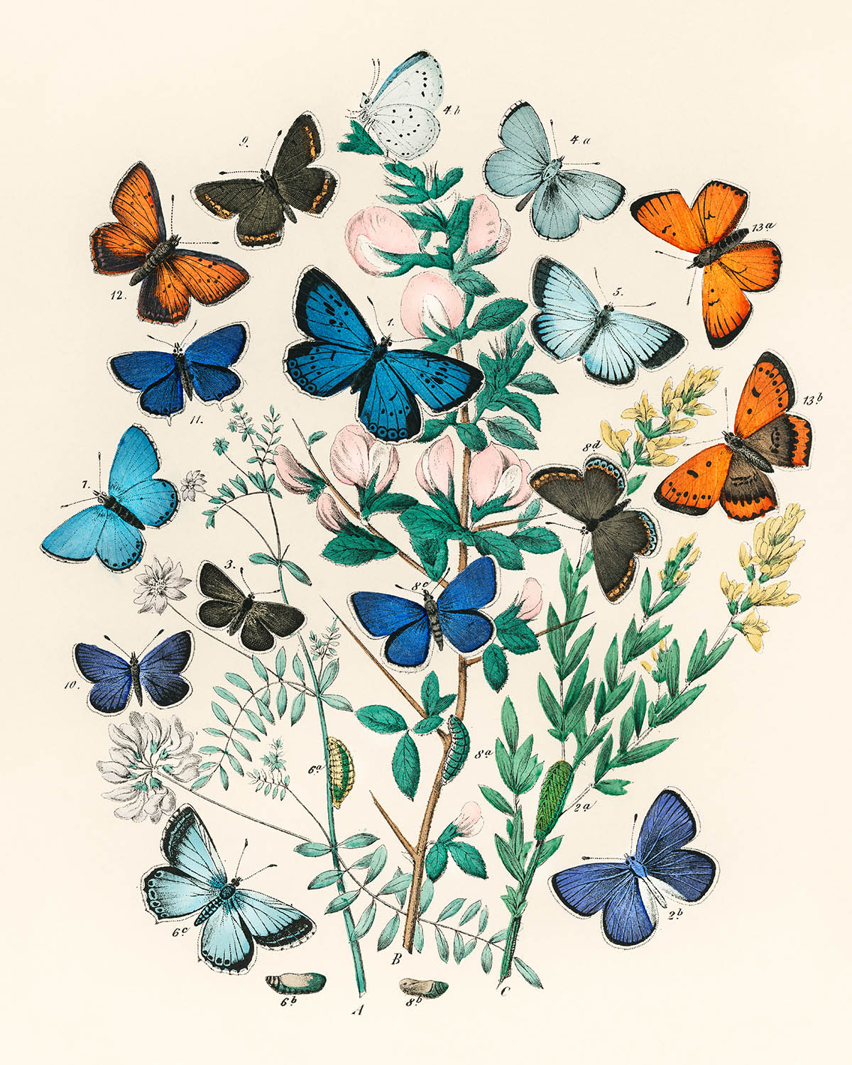 "Butterfly and Moth," first published in 1882, showcases the detailed and vivid artistry of Willem Forsell Kirby, a prominent Victorian zoologist known for his extensive works on insects. This beautiful and highly detailed illustration captures both the elegance and intricacy of butterflies and moths, making it a striking piece for any nature or art enthusiast.