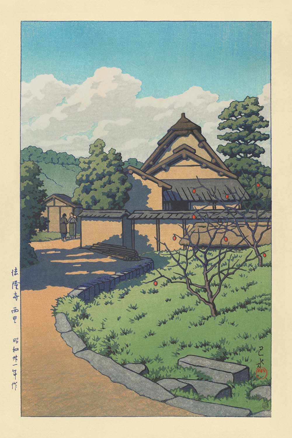 Horyuji Temple West Village (Saiin Garan) by Hasui Kawase, 1935