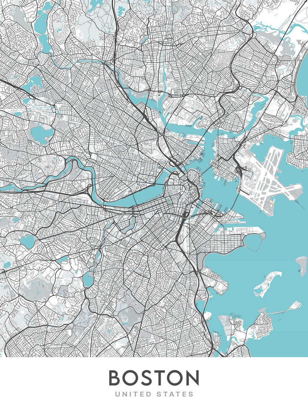 This original creation by The Unique Maps Co. features unique cartography, modern design, and a unique color scheme. The map is meticulously crafted to provide an accurate and visually appealing representation of Boston. It is a must-have for anyone interested in the city, whether they are residents, visitors, or simply admirers of beautiful maps.