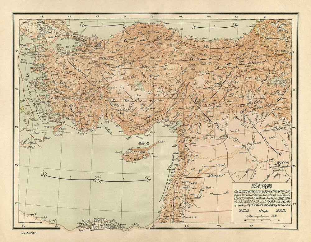 Old Arabic Map of Turkey by Hafız Ali Eşref, 1893: Cyprus, Syria, Palestine, Ottoman Empire, Black Sea, Anatolia