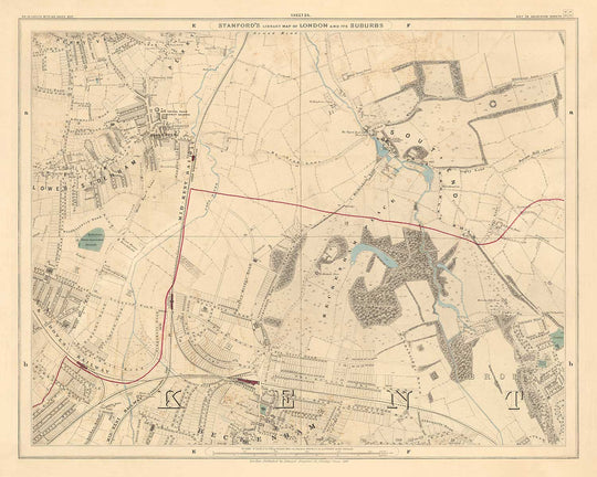 Old Colour Map of South East London, 1891: Bromley, Beckenham, Sydenham, Southend, Downham