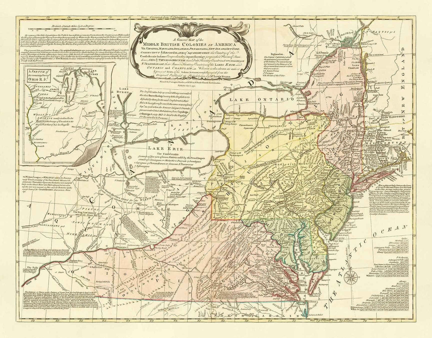 Published in 1755 by Lewis Evans and John Bowles, this is perhaps the finest and rarest map of British (and European) colonies in North America.