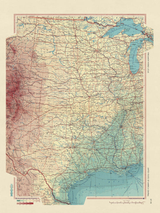 Old Map of Central USA, 1967: Chicago, New Orleans, Rocky Mountains, Mississippi River