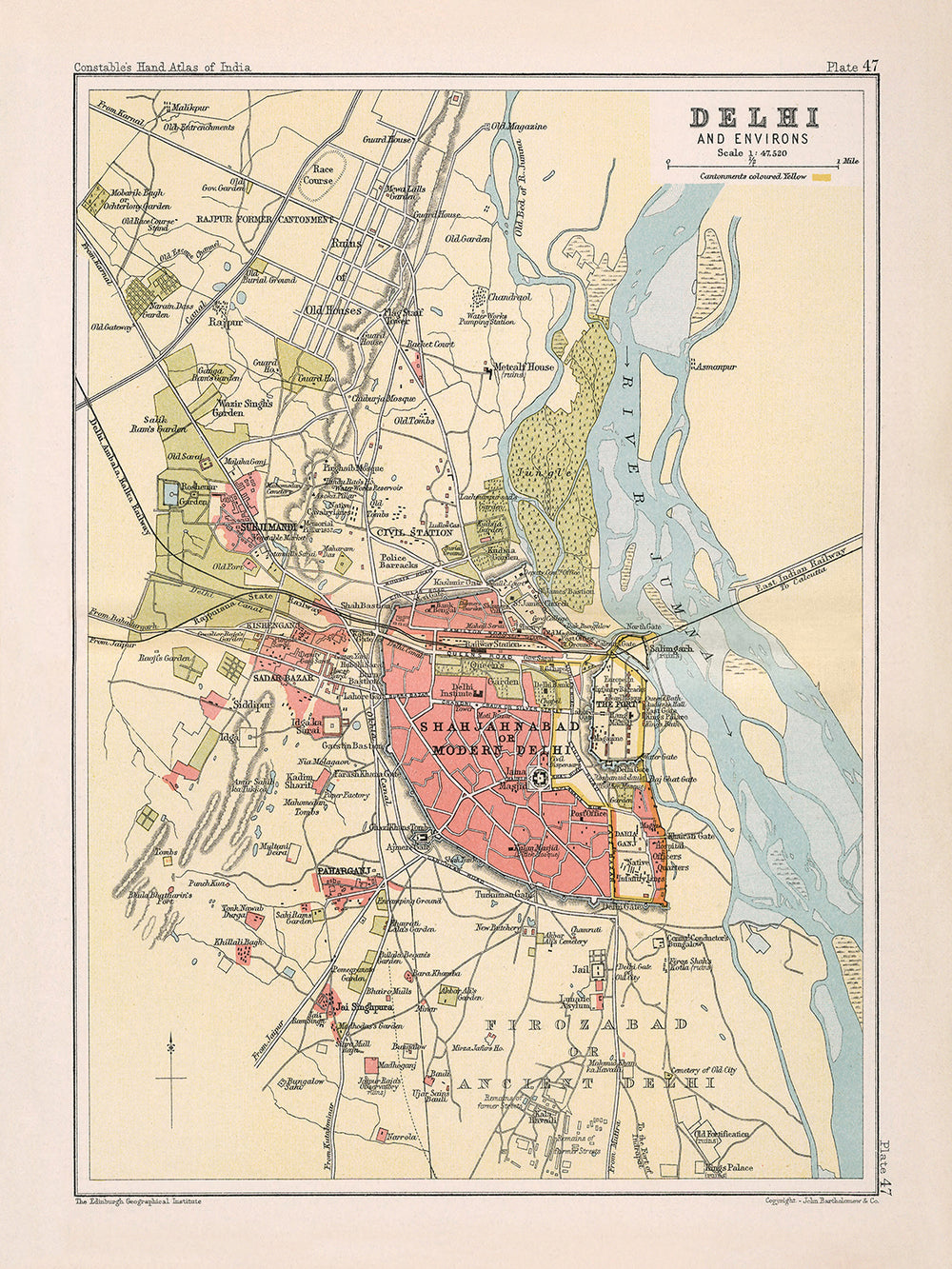 - Urban layout and infrastructure of Delhi and its surroundings in the late 19th century.