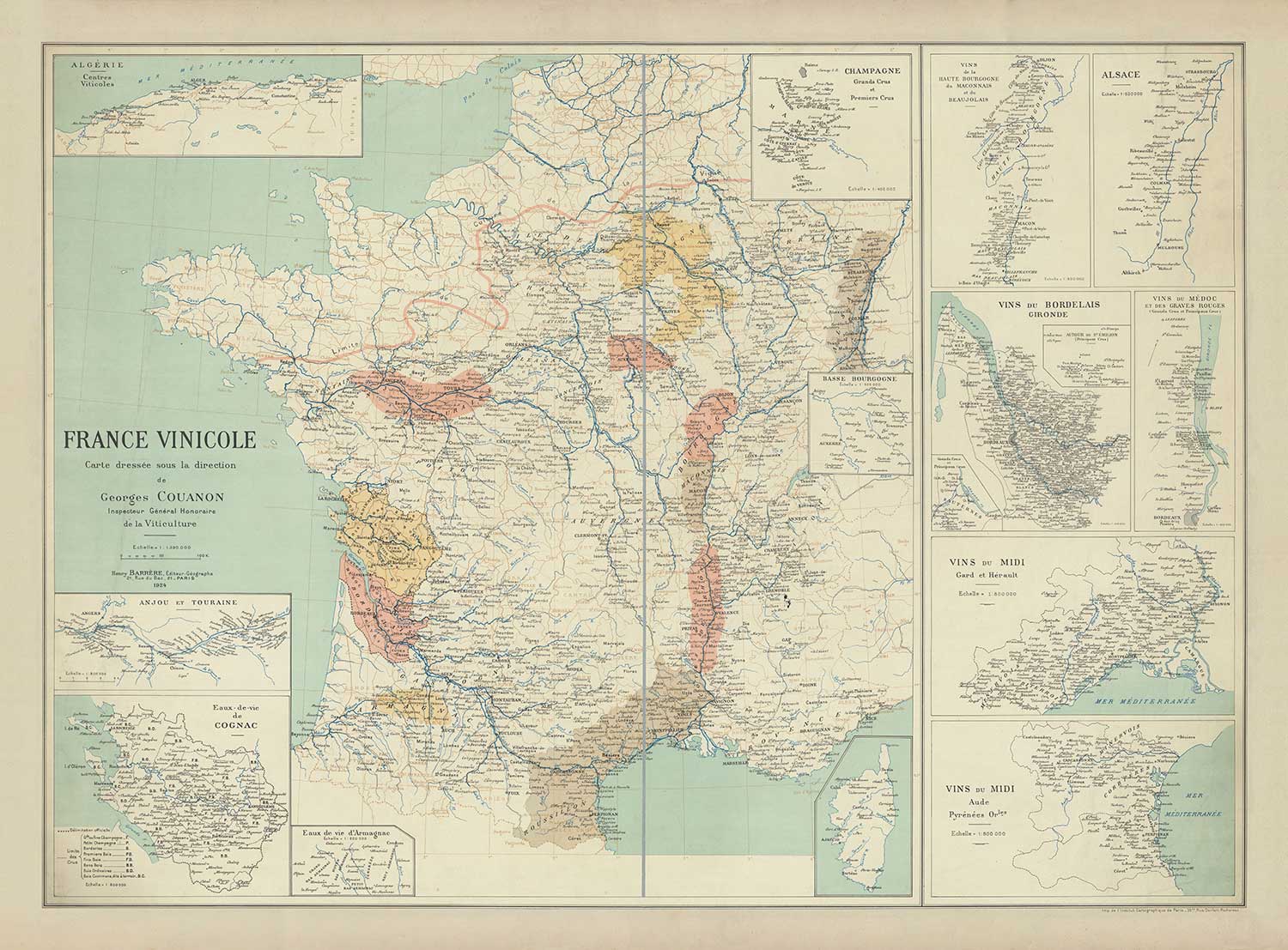 This wonderful old map of of France Vinicole (wine growing) was originally published in 1924. It was created by an anonymous mapmaker.