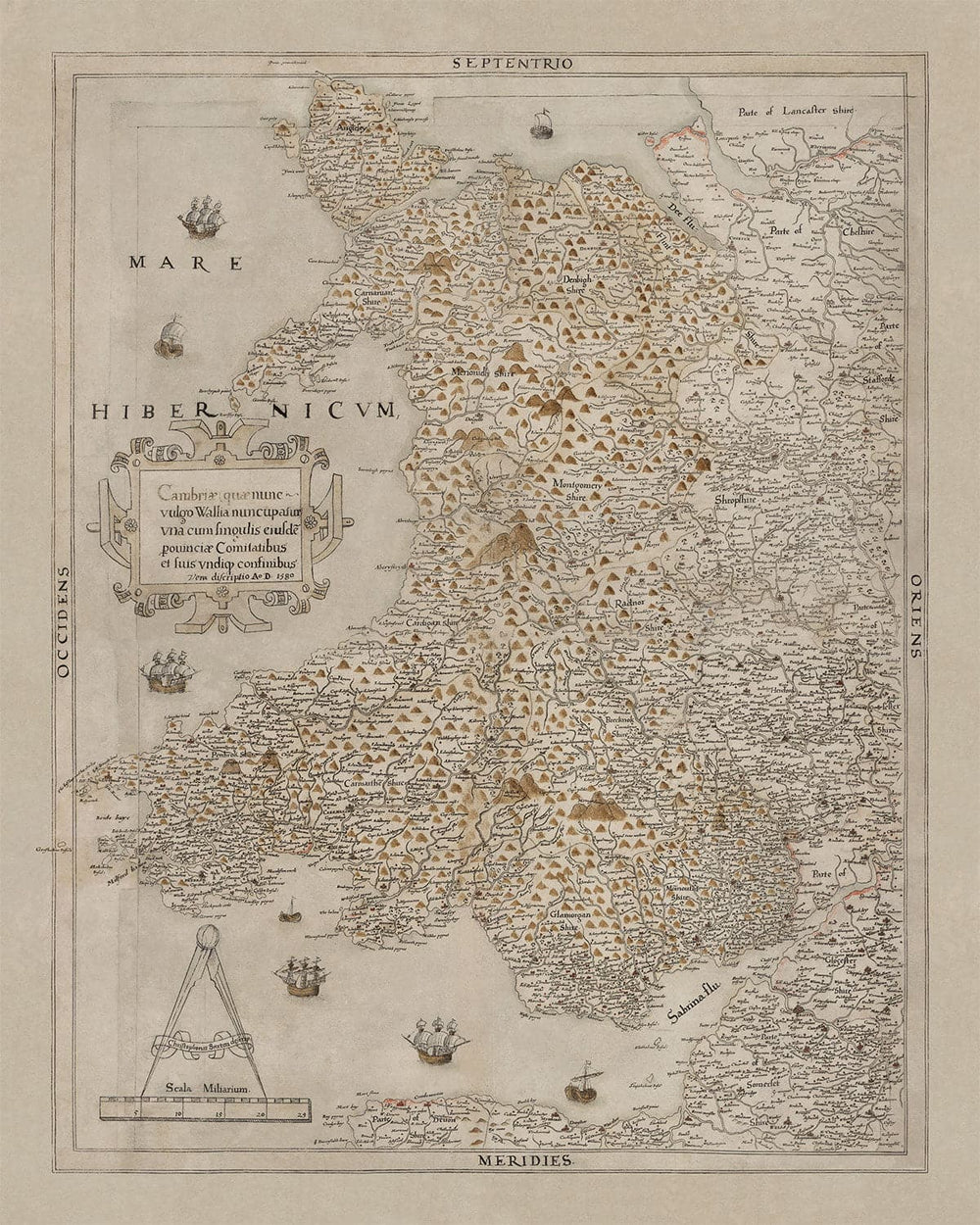 Old Map of Wales, Cymru by Christopher Saxton in 1580: First Accurate Map of Wales