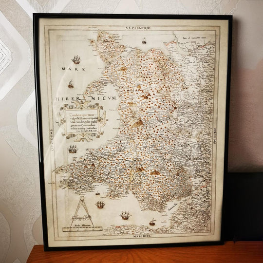 This map is available as a giclée print on acid free archival matte paper, or you can buy it framed. The frame is a nice, simple black frame that suits most aesthetics. Please get in touch if you'd like a different frame colour or material. My frames are glazed with super-clear museum-grade acrylic (perspex/acrylite), which is significantly less reflective than glass, safer, and will always arrive in perfect condition.