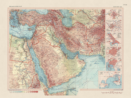 Old Map of West Asia & Middle East, 1967: Detailed Political and Physical Map