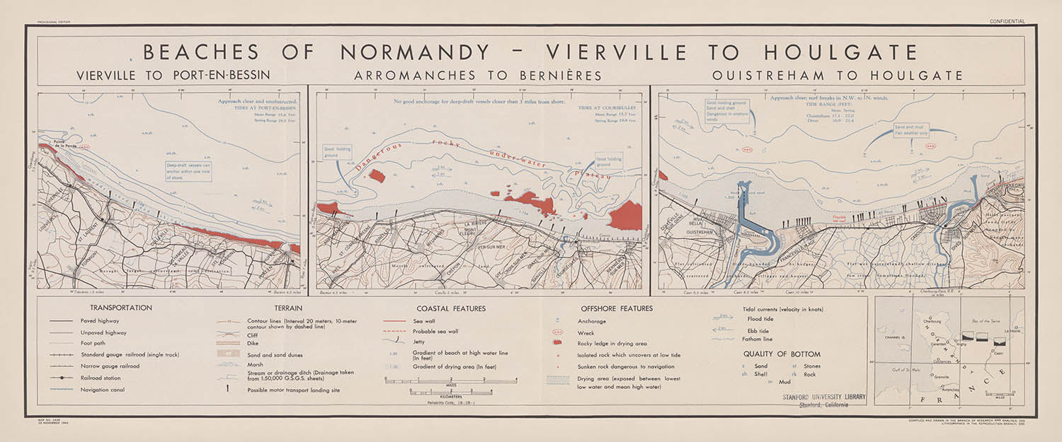 Old Military Map of Normandy Beaches, 1943: D-Day Planning, Vierville to Houlgate, Arromanches