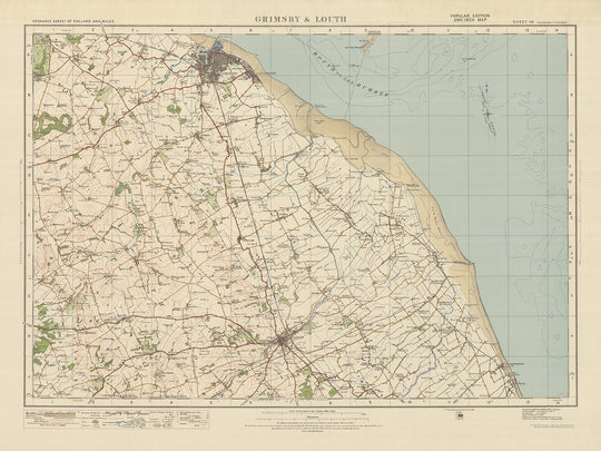 Immerse yourself in the rich history and captivating landscapes of Grimsby, Louth, and their surrounding areas with this extraordinary old map from 1925.