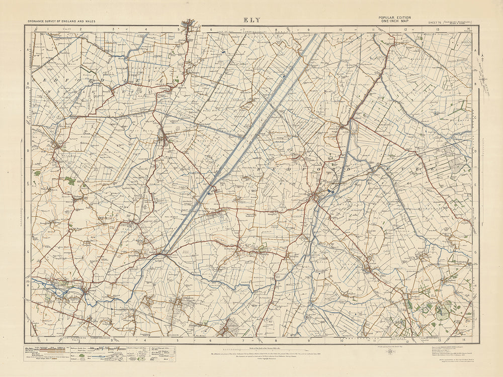 Immerse yourself in the past with the "Sheet 75 - Ely" map from Ordnance Survey's One-inch "Popular" edition, England and Wales, published in 1925. Discover the historic county of Ely and explore the towns, boundaries, and natural features that shaped the region's fascinating history.