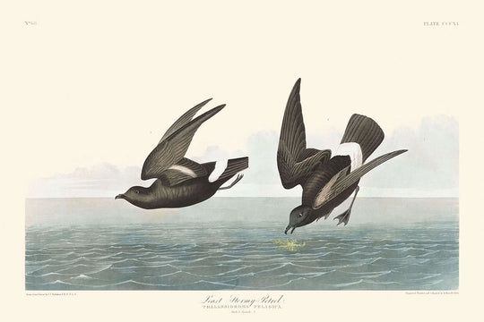 Least Stormy-Petrel, first published in 1827, is a stunning illustration by the acclaimed naturalist and artist John James Audubon. This piece is part of Audubon's ambitious collection, "Birds of America," a comprehensive documentation of North American birds that remains one of the most celebrated ornithological works.