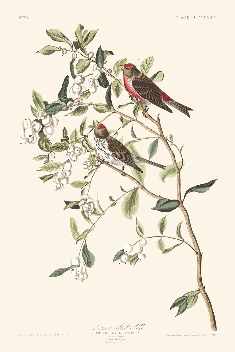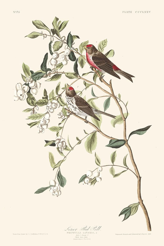 Owning this print is not just about possessing a piece of art but embracing a fragment of natural history. It celebrates the Lesser Red-Poll's resilient nature and captivating charm, beautifully depicted through the eyes of one of America's most prolific wildlife artists. This piece is not merely an illustration but a testament to Audubon's dedication to capturing the intimate details of the avian world.