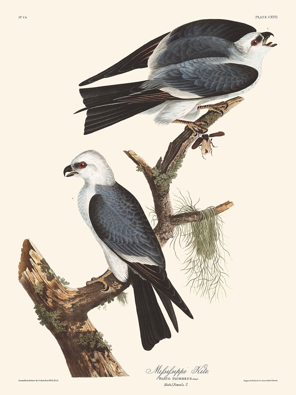 With its intricate details and historical significance, owning a print of the Mississippi Kite is not just about acquiring art; it's about possessing a piece of natural history. This print's remarkable composition and colors can enhance any interior decor, making it a compelling focal point in any room.