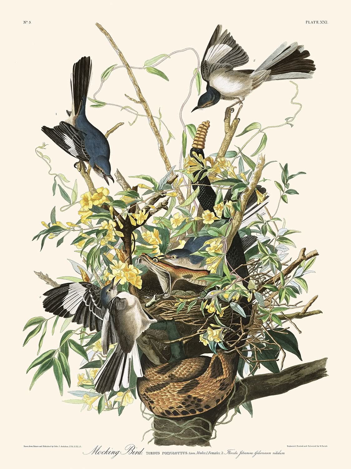The use of color and composition in Audubon’s work is a testament to his observation skills and artistic genius. The intricate detailing of the mockingbird and its surrounding habitat celebrates the beauty and complexity of the natural world. Owning this print is an invitation to reflect on the marvels of nature from the comfort of your home.
