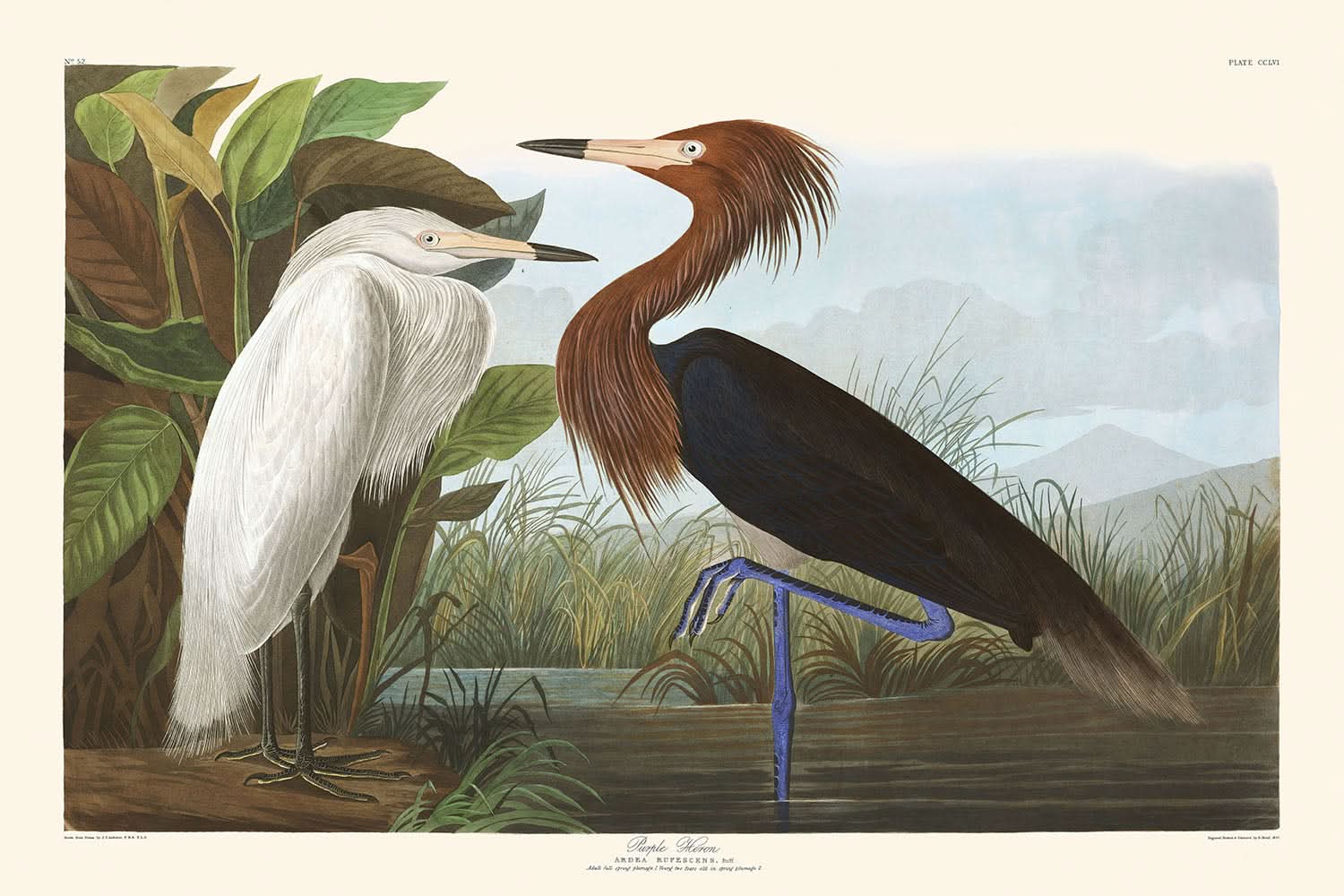 The intricacies of Audubon’s color use and composition bring vibrancy and realism to the Purple Heron. The painting's dynamic yet balanced scene, paired with the heron’s subtleties, makes it a captivating subject for any nature enthusiast or art collector. Owning this print connects you with a rich tradition of art and ornithology.