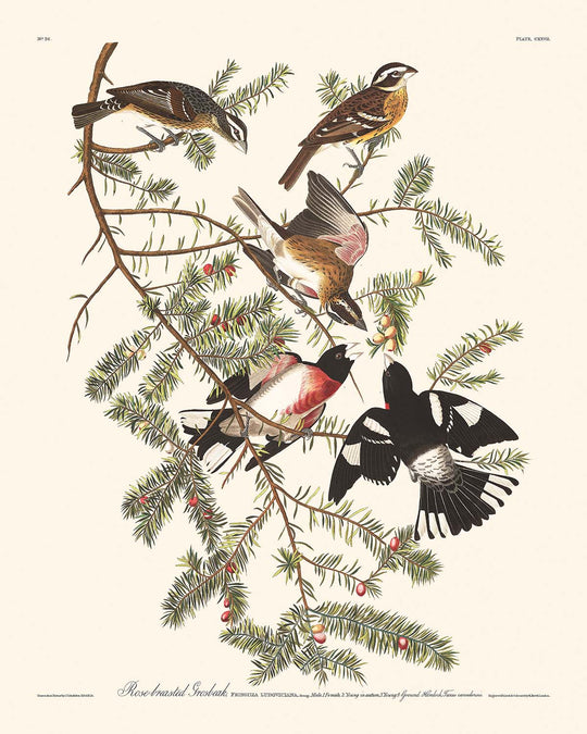 The "Rose-breasted Grosbeak" by John James Audubon, originally published in 1827, graces us with a bird illustration from Audubon's acclaimed "Birds of America" series. This stunning artwork not only exemplifies Audubon's unparalleled observational skills and artistry but also narrates an intimate experience captured in his writings. Through both the visual allure and poetic backstories, Audubon brings nature's splendor to life.