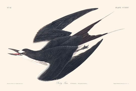 This artwork is notably derived from Audubon’s profound observations of bird species in their natural habitats, particularly as he documented them in the Tortugas. Rich in narrative and scientific insight, his depiction extends beyond mere illustration, providing a window into the unique behaviors and environments of the Sooty Tern.