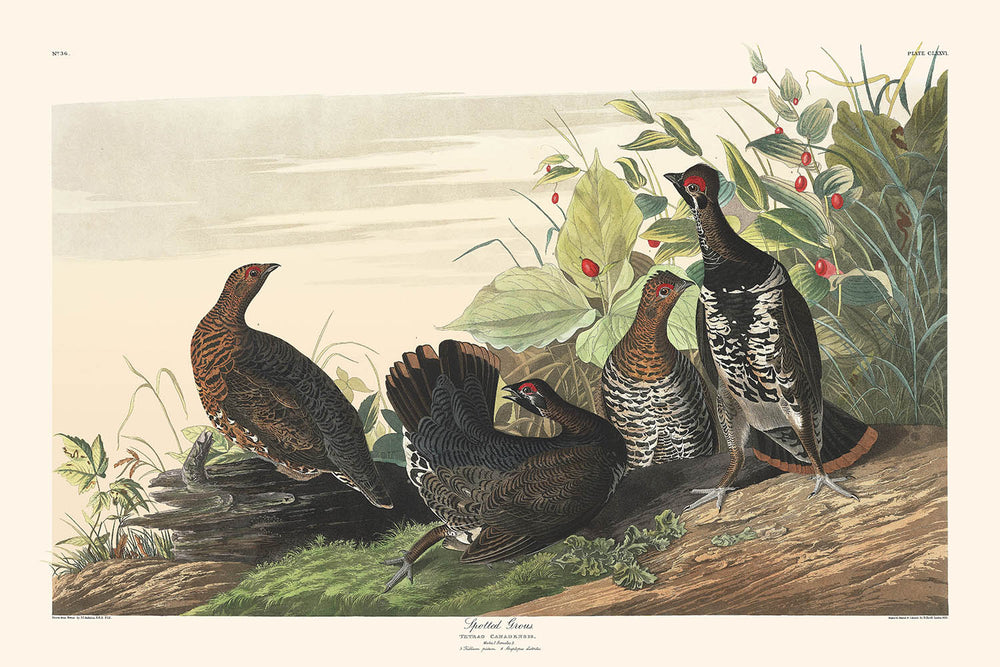 This fine art print of John James Audubon's Spotted Grouse makes for a thoughtful gift. Ideal for nature lovers on occasions such as Father's Day, Christmas, or as a unique housewarming present, it brings a graceful touch of nature into any home.