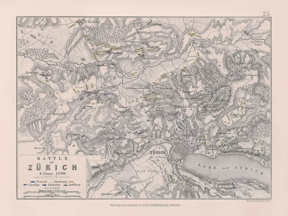 Battle of Zurich by AK Johnston, 1799: French vs. Austrian Forces, Revolutionary War