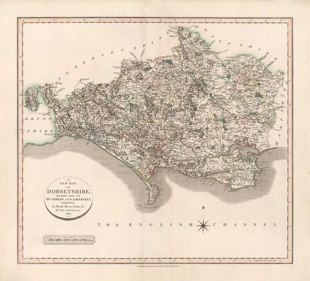 This wonderful old map of Dorset was originally published in 1806. It was created by John Cary.