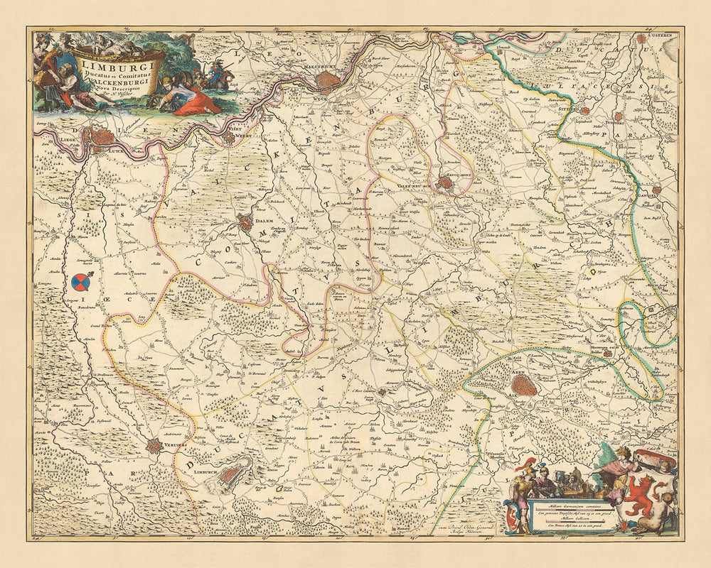This map offers a unique blend of art, history, and geography, making it a perfect addition to any collection. Whether you're a history enthusiast, a lover of maps, or someone who appreciates fine art, this map of the Duchy of Limburg and County of Valkenburg is sure to captivate and inspire.