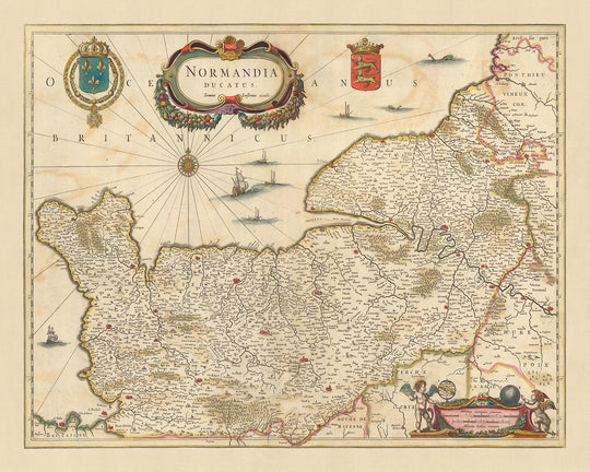 This exquisite map offers not only a geographical perspective but also a unique historical insight into the Duchy of Normandy. It's an essential piece for any history enthusiast or lover of cartography. Explore the intricacies of this map and embark on a journey through time to the Duchy of Normandy in 1690.