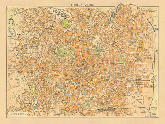 Lastly, the map includes a project for "C.so del Littorio" near Piazza Duomo, a name associated with the Fascist era that would not have been used after 1945. This detail, along with the other historical features captured on the map, make the 'Pianta di Milano' a fascinating document, offering insights into the city's history, its urban development, and the political climate of the time. It is a remarkable testament to Milan's past, and a valuable addition to any collection of historical maps.