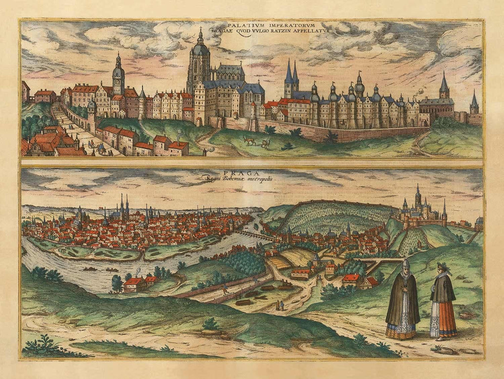 Prague was a pretty big town almost 450 years ago. But you might be hard pressed to identify many of the city’s modern features. 1 or 2 landmarks might still be around today, and some streets and the city walls might be in the same position, though. And of course, in Prague's case, its ancient castle still stands proudly on Hradčany hill looking down upon the city.