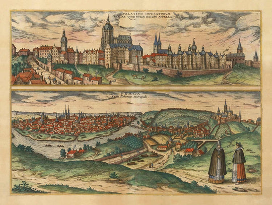 Published in 1572 by Georg Braun and Frans Hogenberg, this is probably the first (and rarest) printed map of Prague, the capital of the Czech Republic or Czechia. If Shakespeare visited Prague, this is what it would've looked like. This map was first published in Civitates Orbis Terrarum - the Cities of the World - which was a cartographical masterpiece featuring 546 maps.