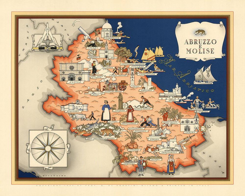 Overall, this map is a valuable resource for anyone interested in the history, culture, and geography of the Italian Region of Abruzzo e Molise. It is a beautiful and informative piece that would make a great addition to any collection.